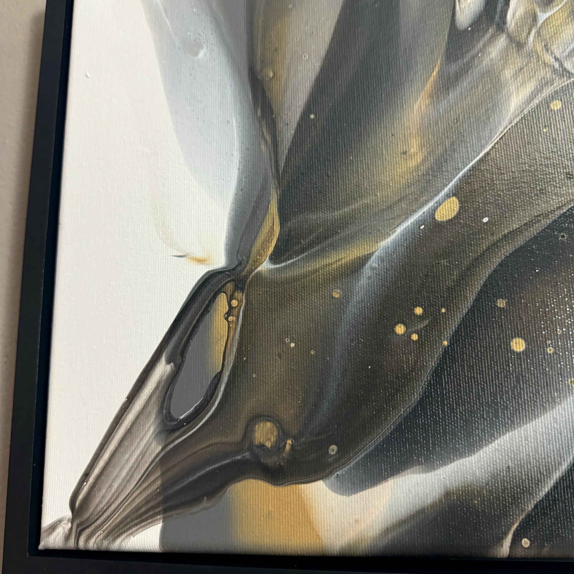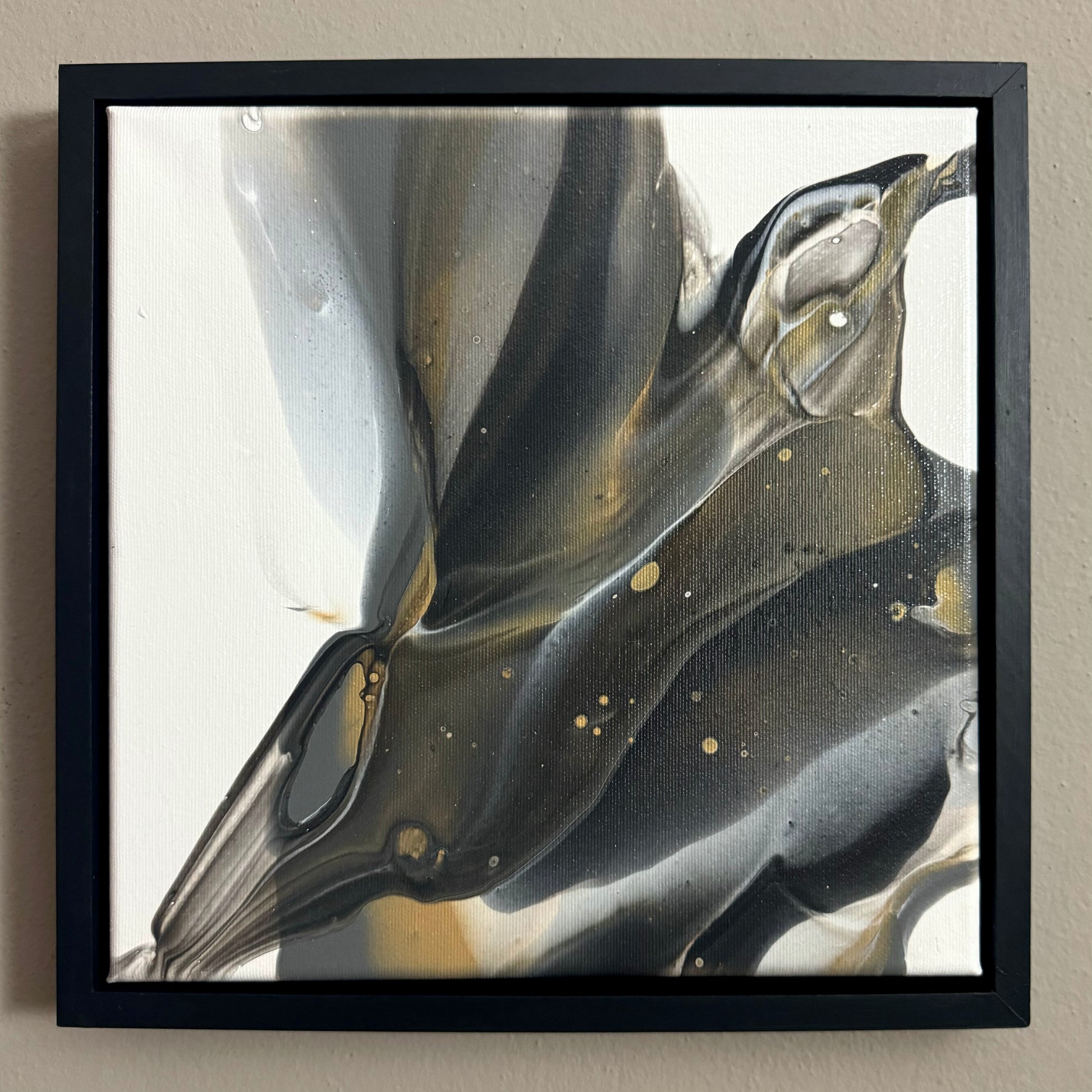 Acrylic fluid art painting on Canvas. Inspired by nature and organic shapes and colors. It comes with a satin finish and custom painted frame