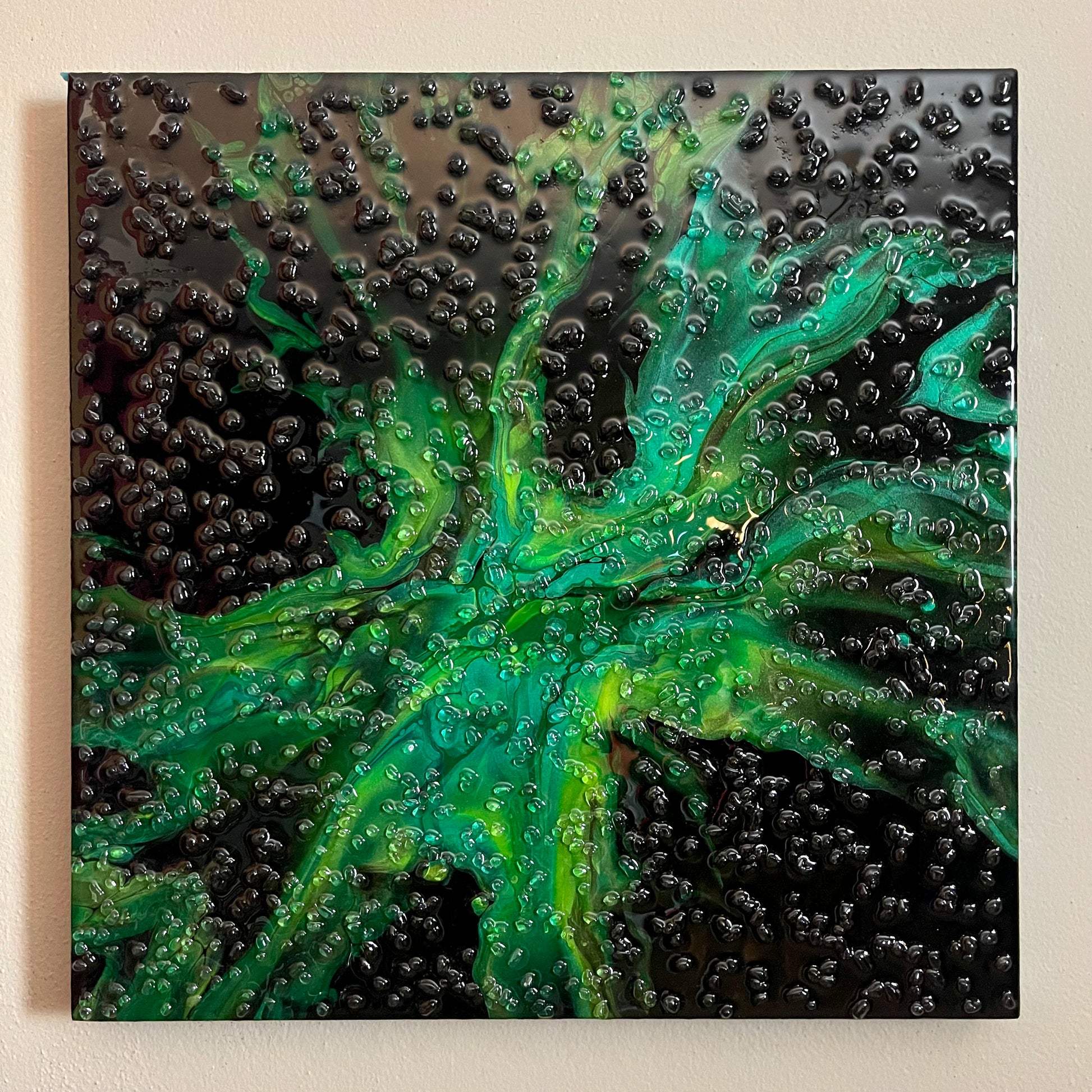 50x50cm acrylic painting on canvas. fluid art mixed media, crushed glass and resin coat
