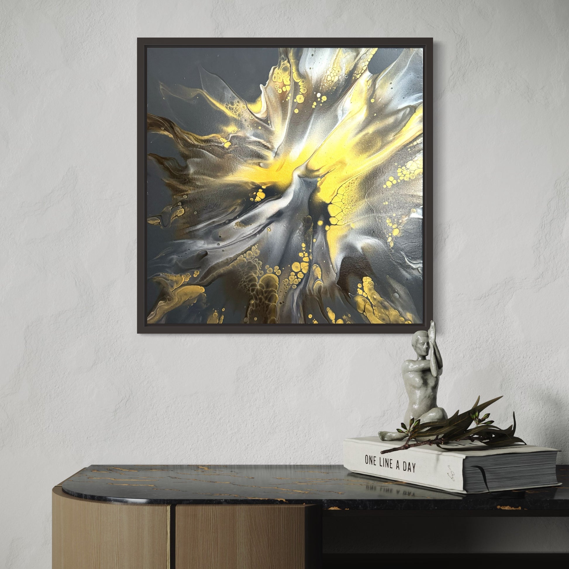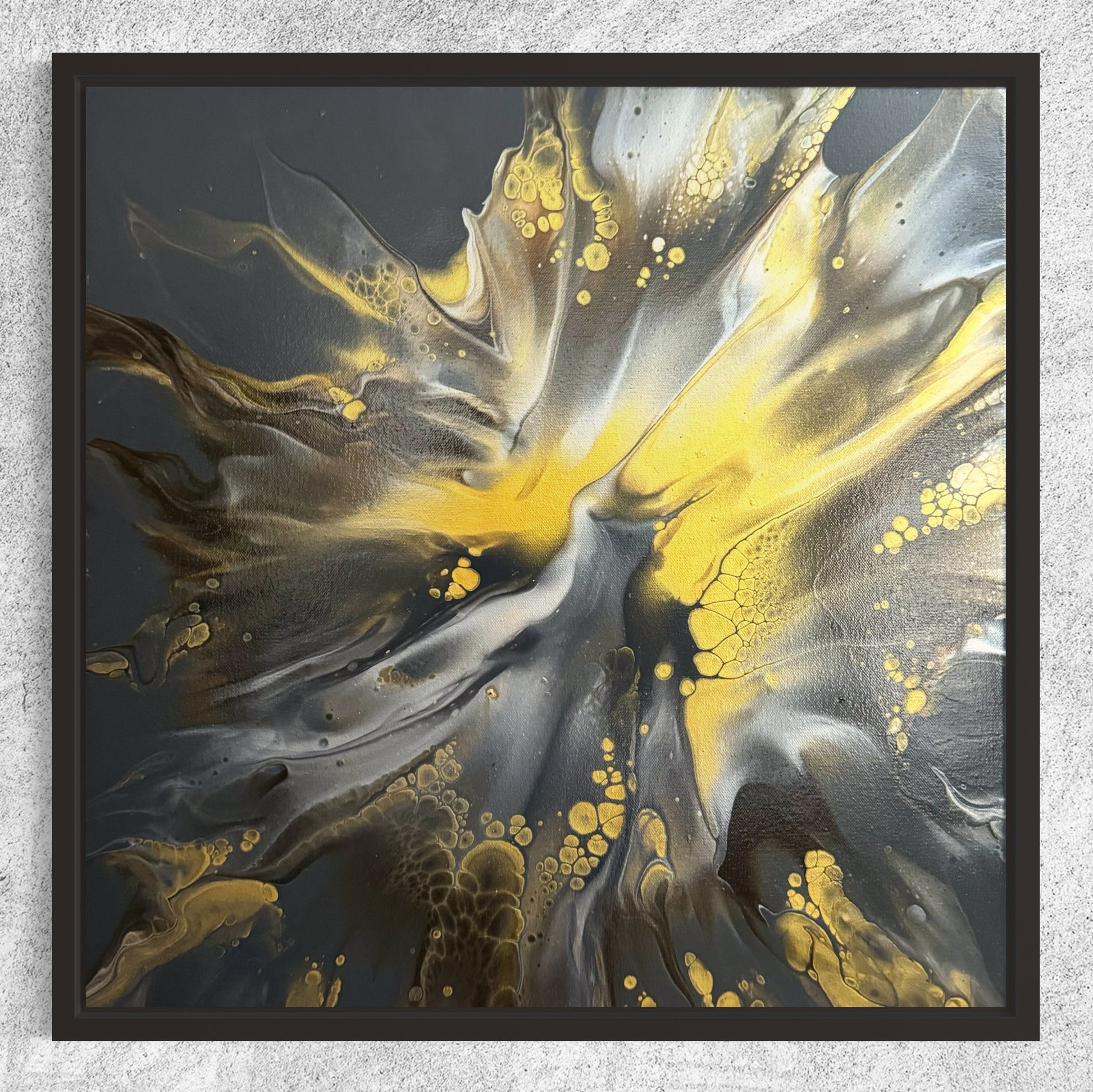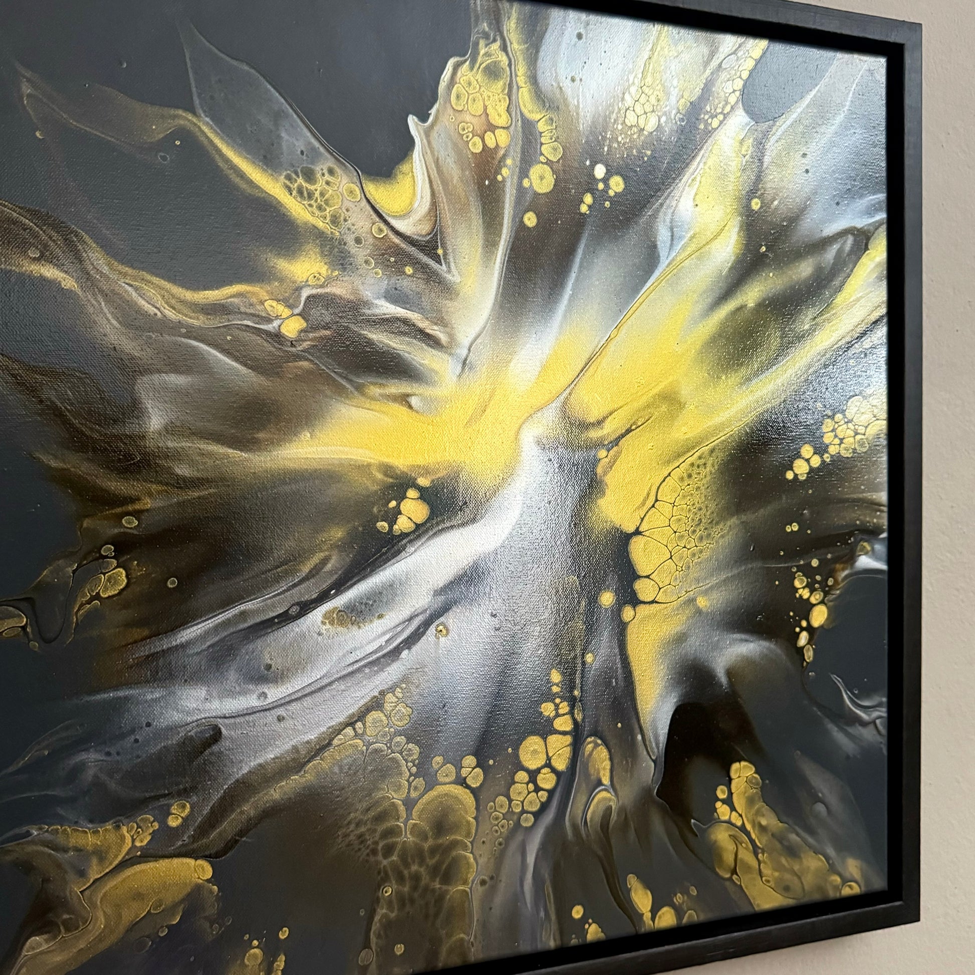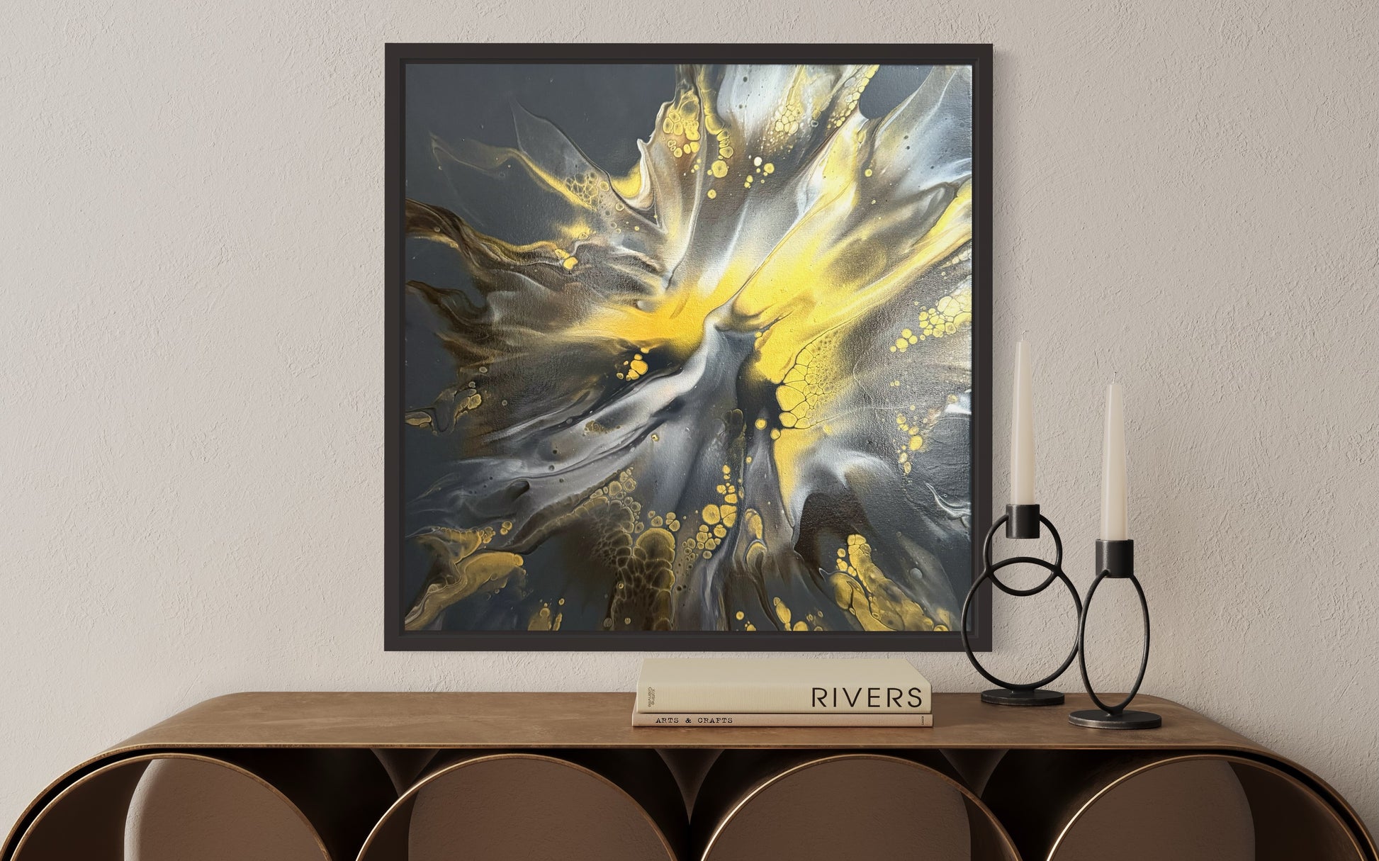 Acrylic painting on canvas finished with a glossy varnish and custom painted and installed frame