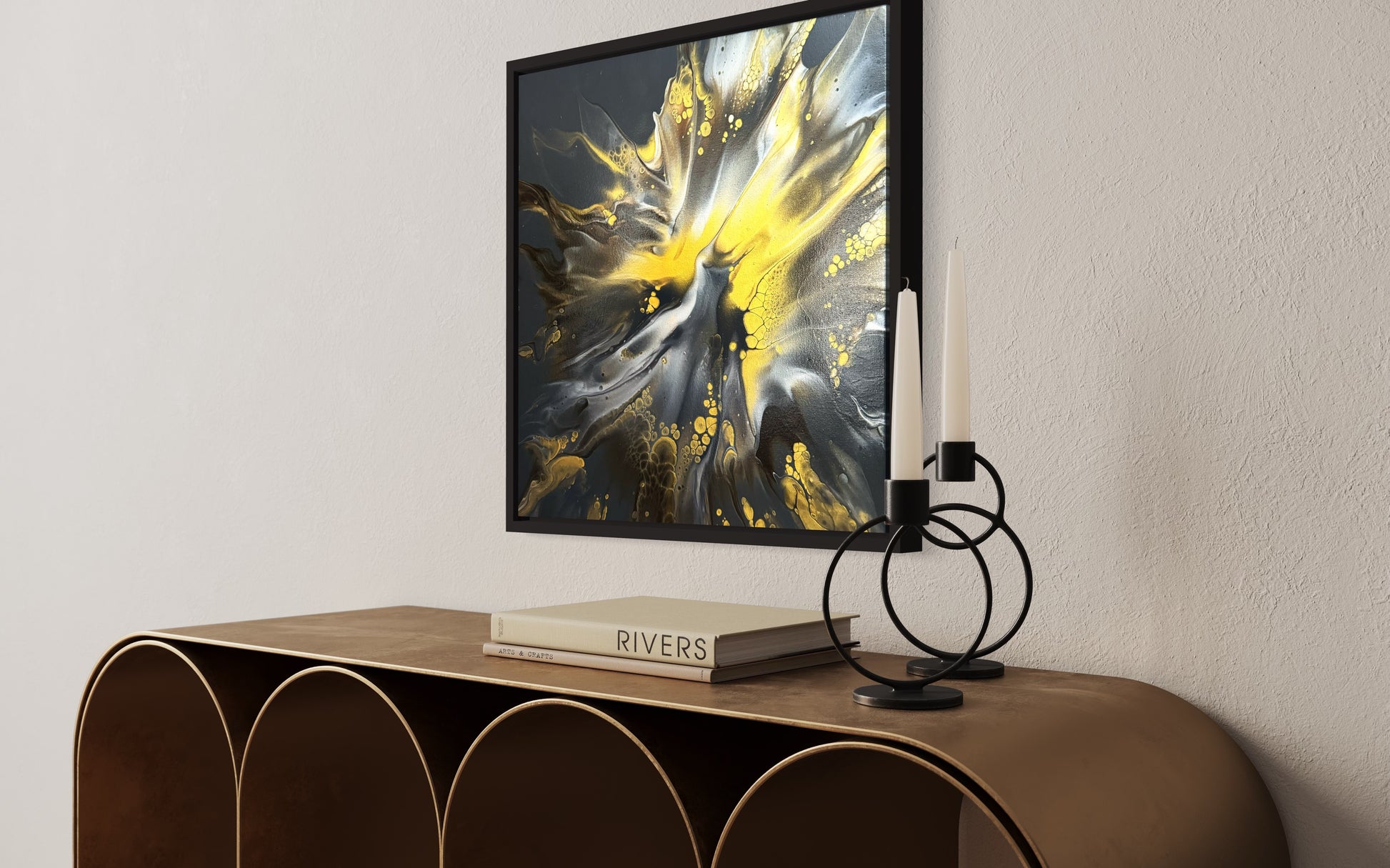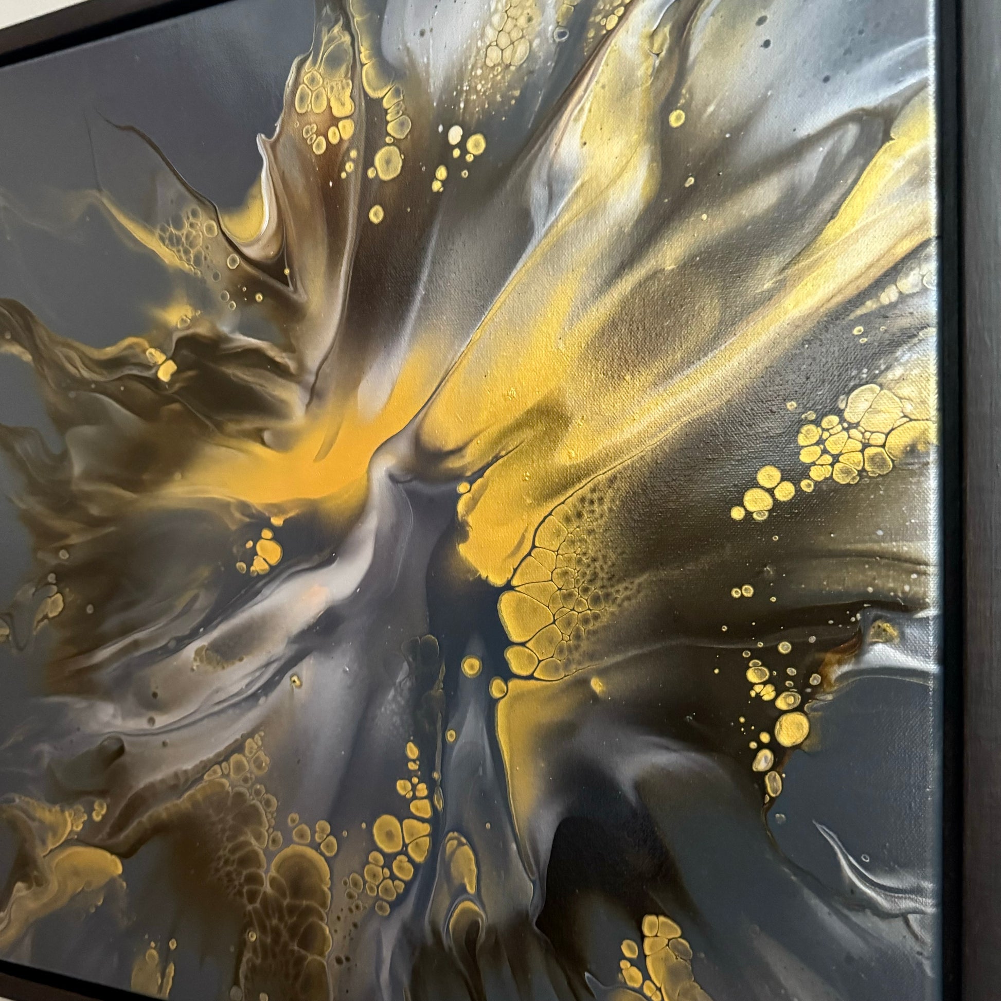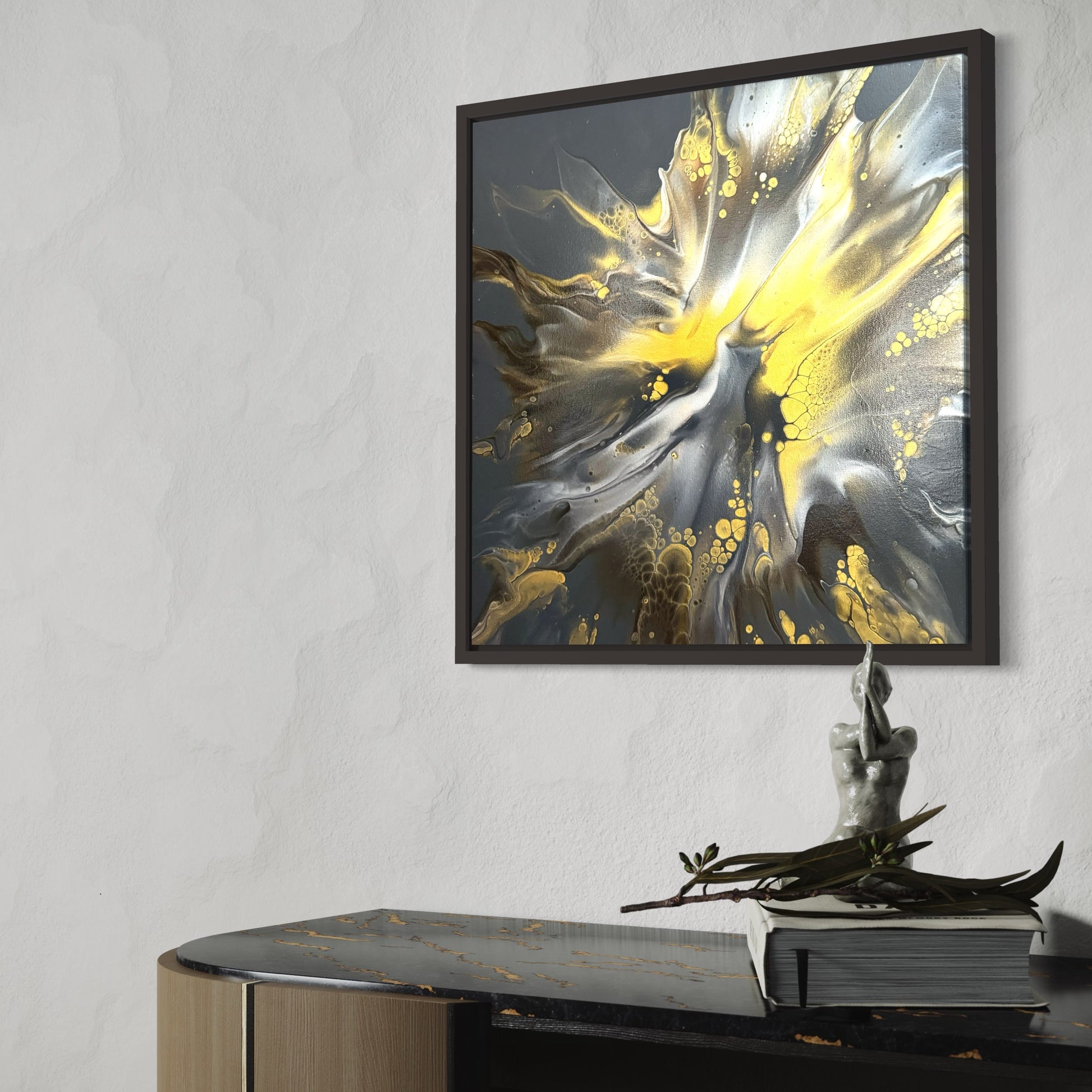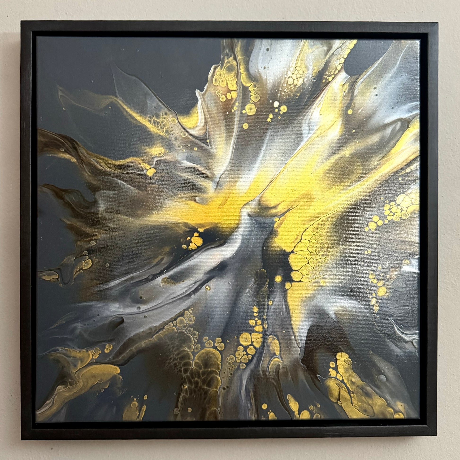 Acrylic painting on canvas finished with a glossy varnish and custom painted and installed frame
