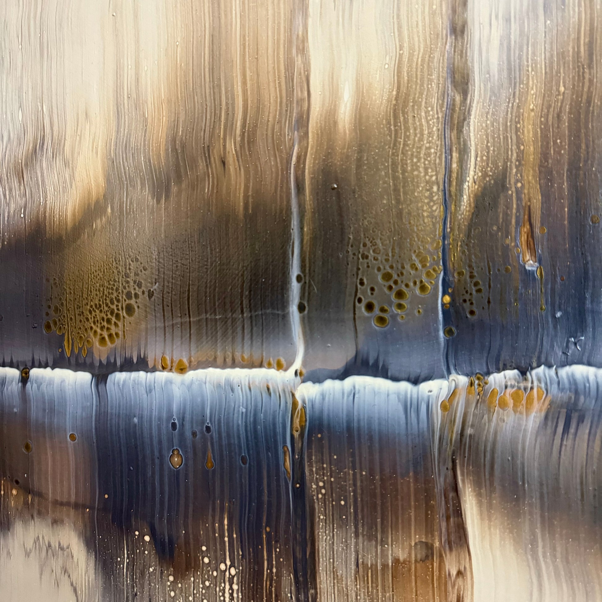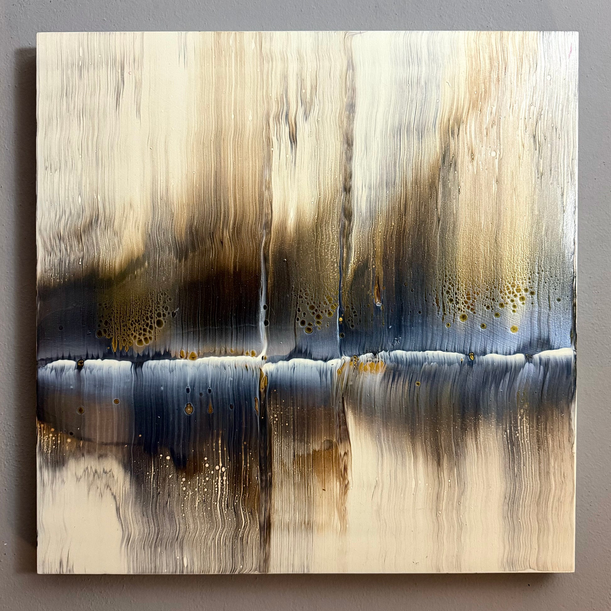 Fluid art painting on wooden canvas in neutrals and earthy colors on an ivory/ creme background. Comes with a glossy finish that protects the painting but also gives the colors even more depth and intensity.