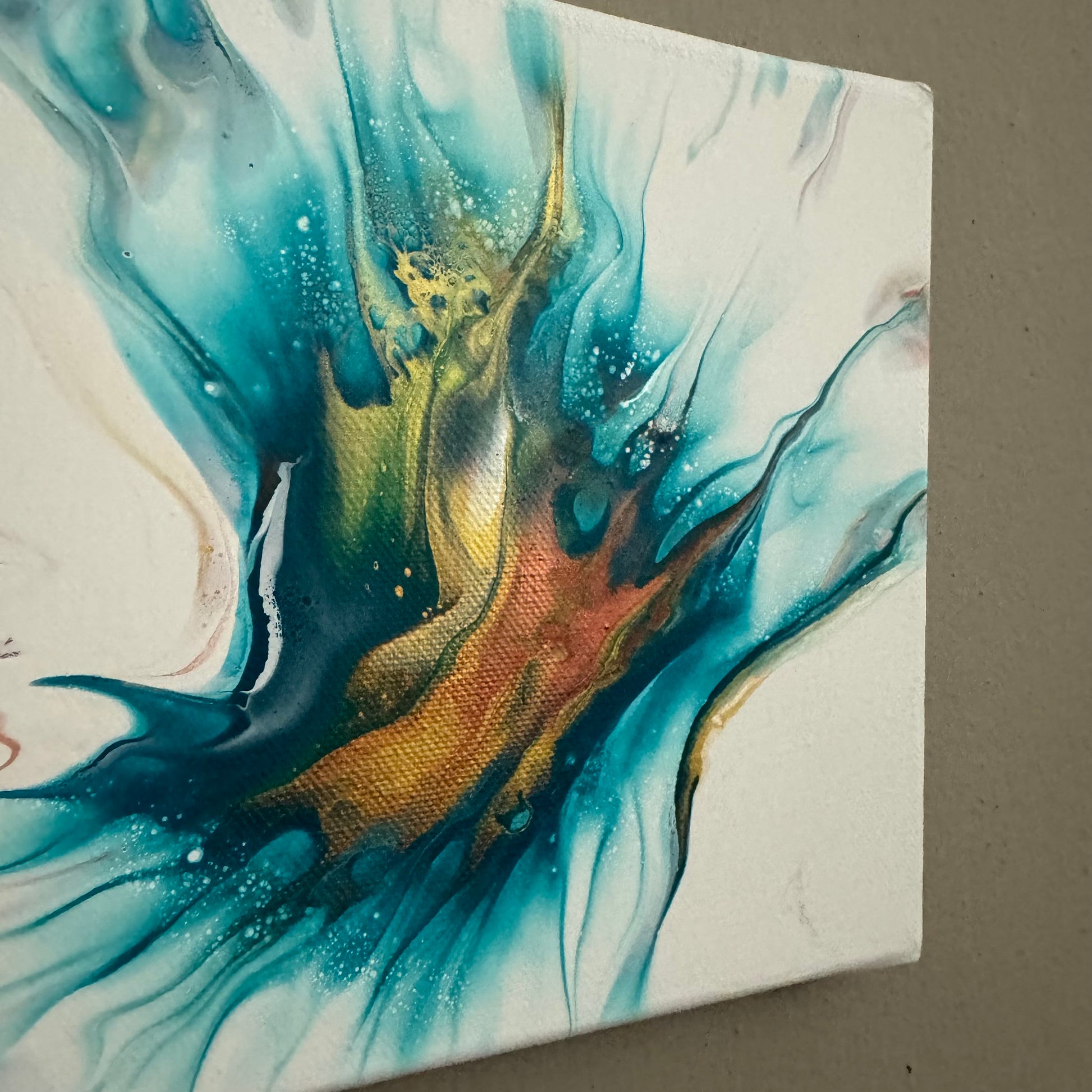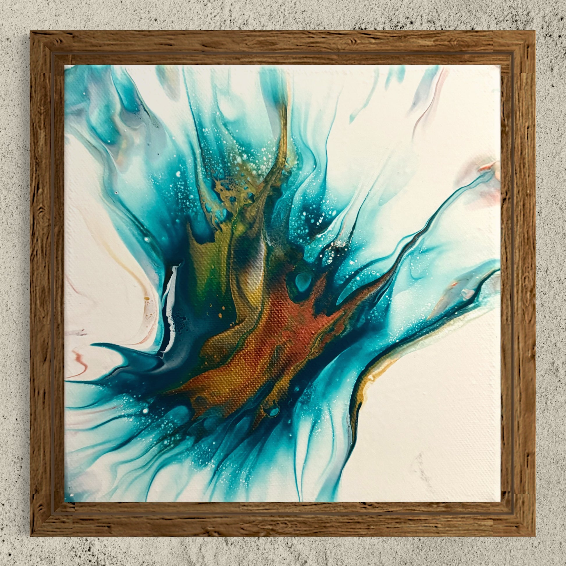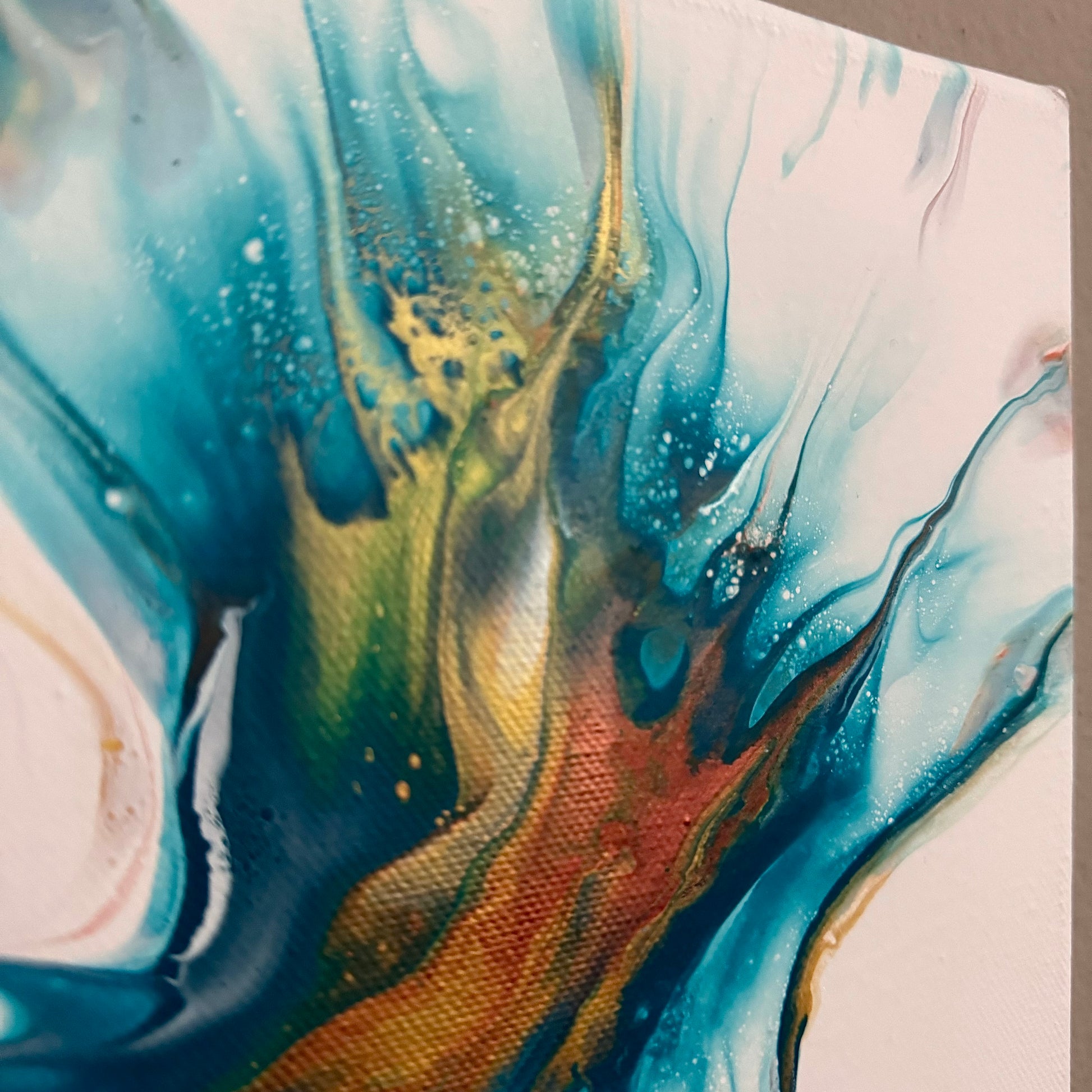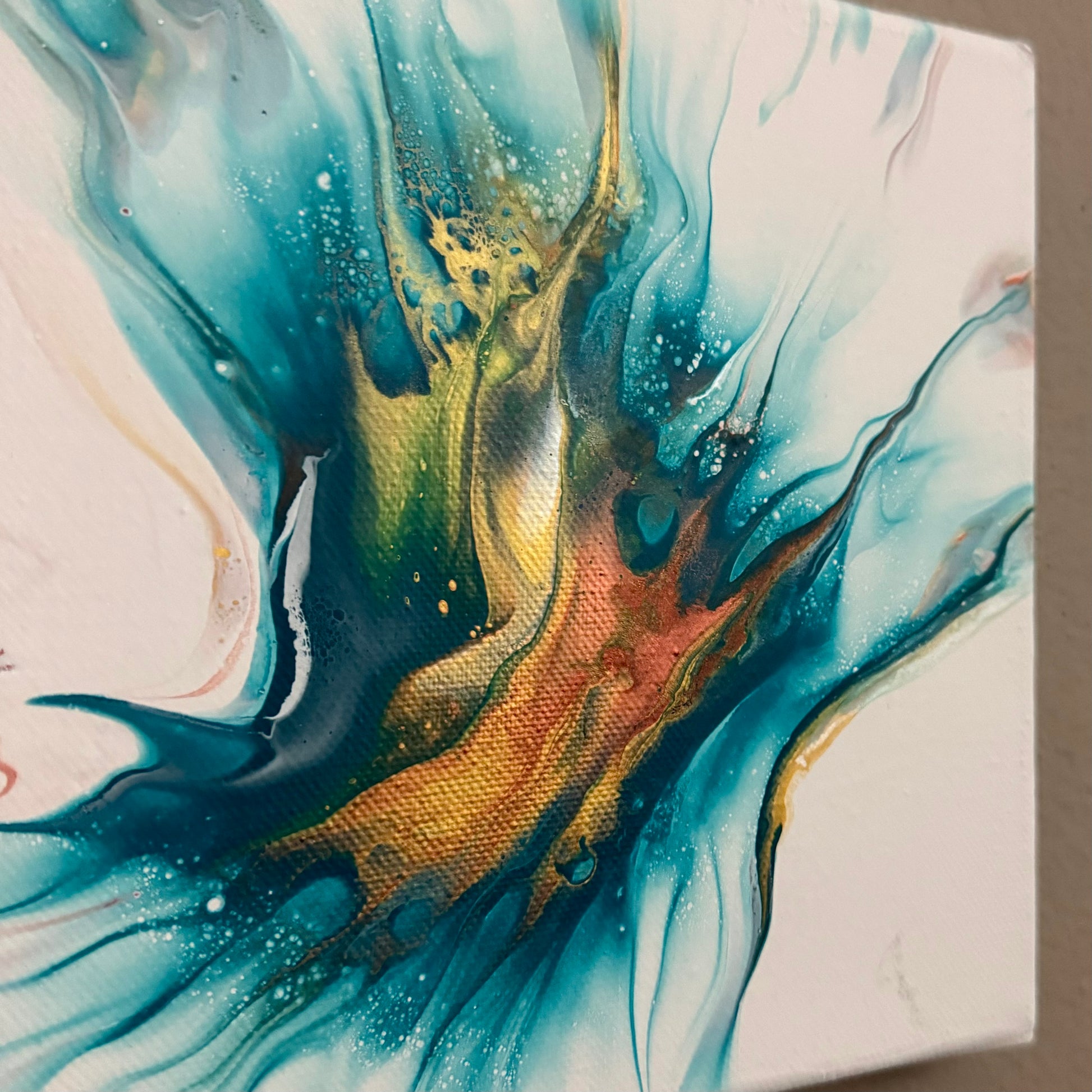 Acrylic fluid art painting on canvas. 20x20. Very organic shapes and details