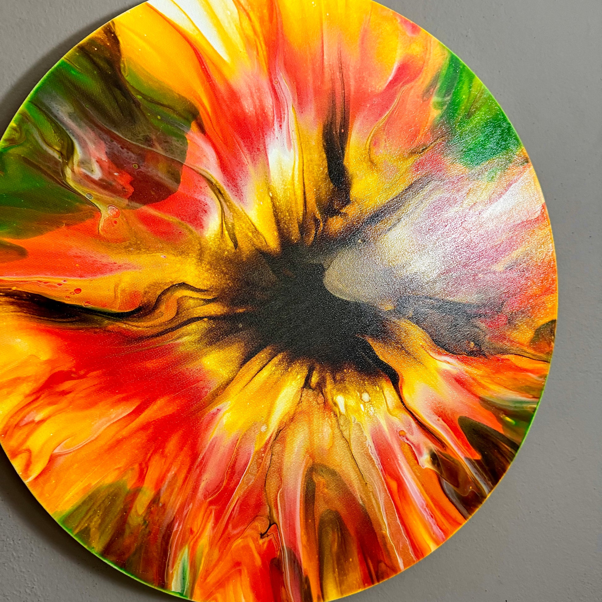 Acrylic fluid art painting on 60 diagonal canvas finished with a glossy varnish